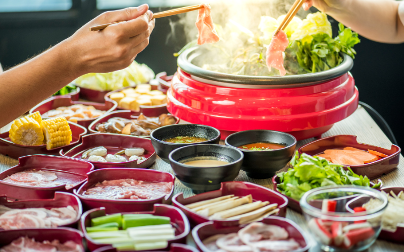 Lẩu nabe là món ăn truyền thống với nước dùng nóng, rau củ, thịt và hải sản – là lựa chọn hoàn hảo cho ngày đông lạnh. Shabu-shabu, với thịt bò thái mỏng nhúng vào nước dùng sôi, cũng là món ăn được yêu thích nhờ hương vị đậm đà và cách thưởng thức độc đáo.