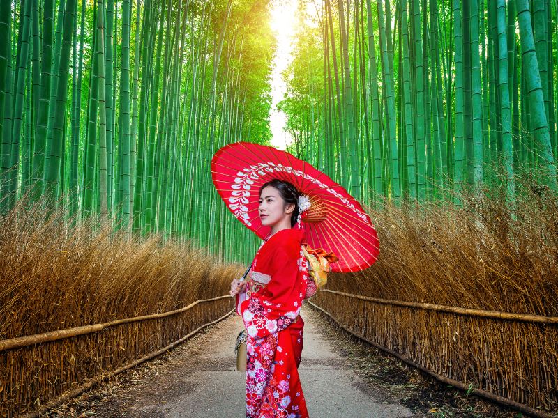 - Rừng Tre Sagano: 1 trong những khu rừng đẹp nhất Nhật Bản. Hàng triệu thân tre thẳng tắp, đứng sát nhau tạo khung cảnh xanh mát rợp mắt. Tiếng vi vu nơi này được đưa vào danh sách "những âm thanh cần được bảo vệ". Rừng tre Sagano có từ rất lâu và sớm trở thành điểm đến của nhiều người dân Nhật Bản xưa. Ngay từ thời Heian (794-1185), giới th ương nhân quý tộc đã chọn đây là điểm nghỉ dưỡng yêu thích.