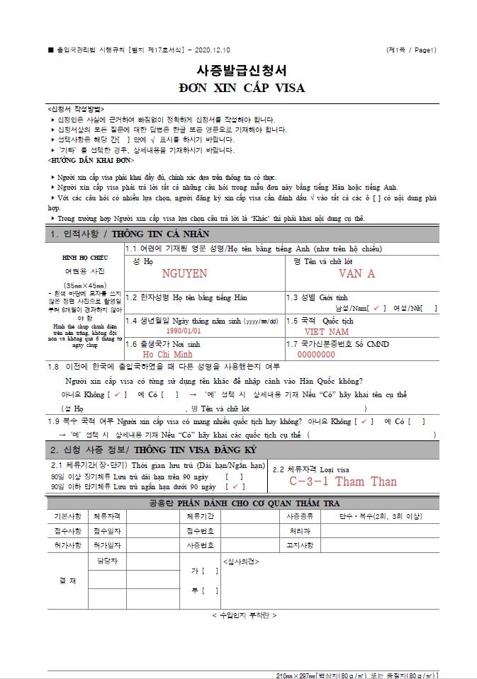 GIỚI THIỆU MẪU ĐƠN XIN VISA HÀN QUỐC
