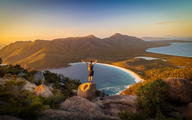 Hòn đảo hoang sơ với vẻ đẹp thiên nhiên nguyên sơ, hùng vĩ. Nơi đây nổi tiếng với những cánh rừng nguyên sinh bạt ngàn, những thác nước đổ xuống từ vách đá cheo leo, những bãi biển hoang sơ cát trắng mịn màng. Đến Tasmania, bạn có thể tham gia các hoạt động trekking, leo núi, cắm trại, khám phá đời sống hoang dã phong phú, hoặc đơn giản là tận hưởng không khí trong lành, yên bình.
