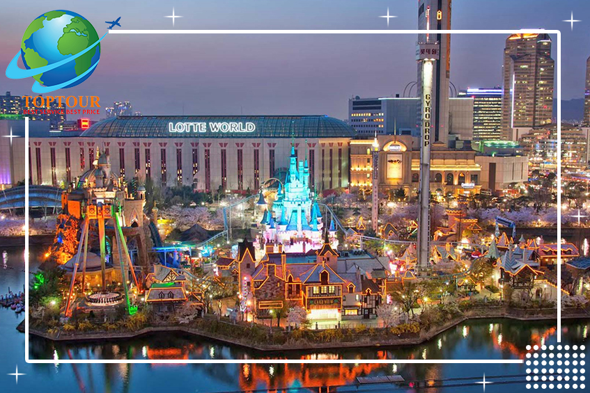 Nếu đang tìm kiếm một điểm đến vui chơi suốt cả ngày, du khách hãy đến với Lotte World! Công viên giải trí này mở cửa quanh năm, với rất nhiều những sự kiện và màn trình diễn sôi động. Tuyệt vời hơn nữa là vị trí ngay khu trung tâm Seoul, rất dễ cho du khách đi đến bằng phương tiện công cộng. Lotte World được chia thành hai khu: Khu Thám Hiểm trong nhà và bên ngoài là Đảo Phép Thuật. Khu Thám Hiểm có rất nhiều điểm thu hút, gồm trò kéo quân, Tàu cướp biển Tây Ban Nha, xe lửa và rất nhiều trò chơi khác, còn Đảo Phép Thuât có những trò chơi mạo hiểm như Rơi tự do (Gyro Drop) và Vòng lăng (Gyro Spin). Ngay cạnh đó là Tháp Seoul Sky và Trung tâm thương mại Lotte World vậy nên đừng quên đi dạo xung quang nơi này một vòng nếu du khách đã đến đây nhé.