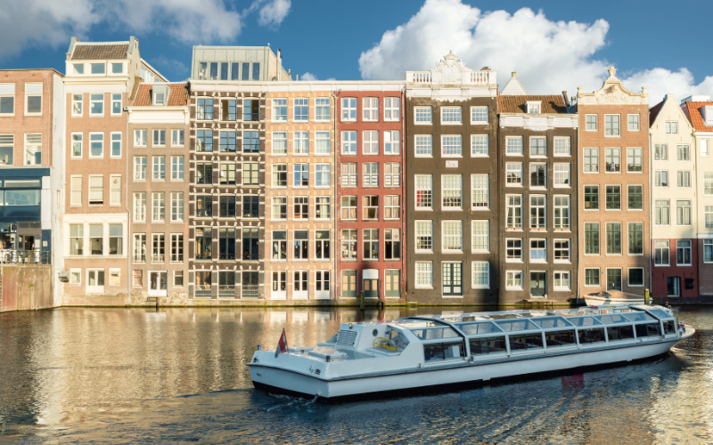 Amsterdam nổi tiếng với hệ thống kênh đào độc đáo, tạo nên một khung cảnh lãng mạn và quyến rũ. Du thuyền trên những con kênh này là một trải nghiệm không thể bỏ qua, cho phép du khách chiêm ngưỡng những ngôi nhà cổ kính, những cây cầu xinh đẹp và nhịp sống sôi động của thành phố từ một góc nhìn hoàn toàn khác biệt. Khi du thuyền trên kênh du khách sẽ có nhiều góc chụp ảnh đẹp. Có thể nói rằng những bức hình chụp tại Amsterdam sẽ giúp cho chuyến đi Châu âu mùa hè của quý vị thêm phần đáng nhớ.