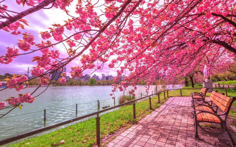 Công viên Ueno là một trong những công viên công cộng đầu tiên của Nhật Bản, khoác lên mình tấm áo choàng màu hồng rực rỡ mỗi độ xuân về. Với hơn 1.000 cây hoa anh đào thuộc nhiều giống khác nhau, Ueno trở thành điểm đến lý tưởng cho những buổi dã ngoại hanami náo nhiệt. Không khí tại công viên luôn tràn ngập niềm vui và sự phấn khích khi hàng ngàn người dân địa phương và du khách tụ tập dưới những tán cây anh đào, cùng nhau ăn uống, trò chuyện và ngắm nhìn vẻ đẹp mùa xuân.