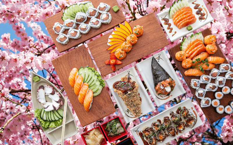 Mùa hoa anh đào không chỉ mang đến vẻ đẹp rực rỡ cho cảnh quan, mà còn là nguồn cảm hứng cho những món ăn đặc biệt. Các đầu bếp Nhật Bản đã sáng tạo ra nhiều món ăn độc đáo, sử dụng hoa anh đào như một nguyên liệu quý giá, mang đến hương vị thơm ngon và màu sắc bắt mắt. Du khách có thể thưởng thức những món ăn đặc trưng của mùa xuân như: