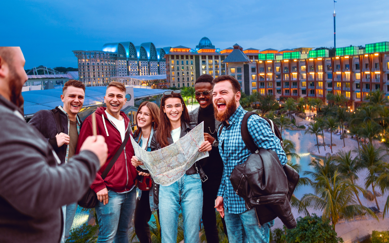 Hôm nay, chúng ta sẽ đến với Sentosa - hòn đảo du lịch nổi tiếng với những khu vui chơi giải trí hấp dẫn. Đầu tiên là Universal Studios Singapore - công viên giải trí đẳng cấp thế giới với những trò chơi mạo hiểm, show diễn hoành tráng và các khu vực chủ đề được thiết kế công phu dựa trên những bộ phim nổi tiếng như Hollywood, Madagascar, Far Far Away...
